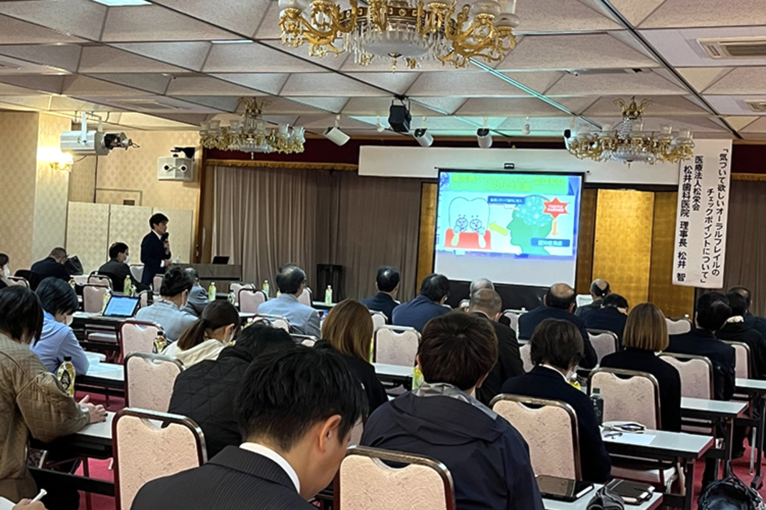 また、院内には「オーラルフレイル外来」を掲げ、日々データを蓄積しながら取り組むほか、地元の歯科医師会や他職種連携のセミナーに招かれ講演活動も行っています。